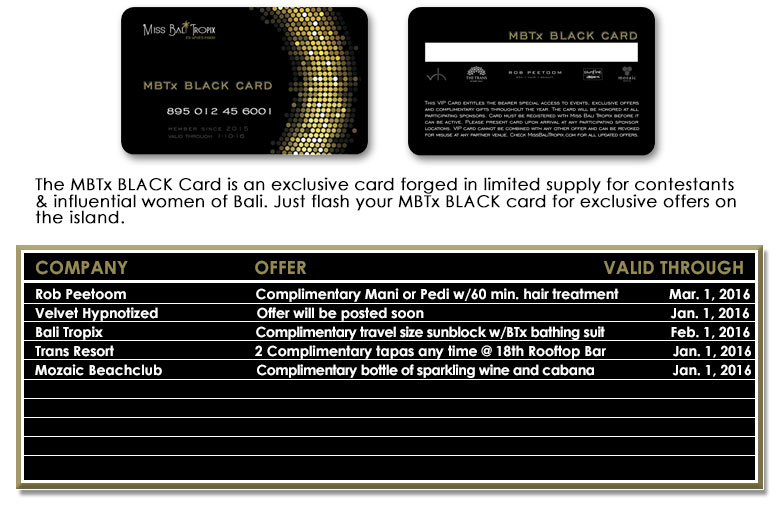 1. Offer available for Miss Bali Tropix contestants only.